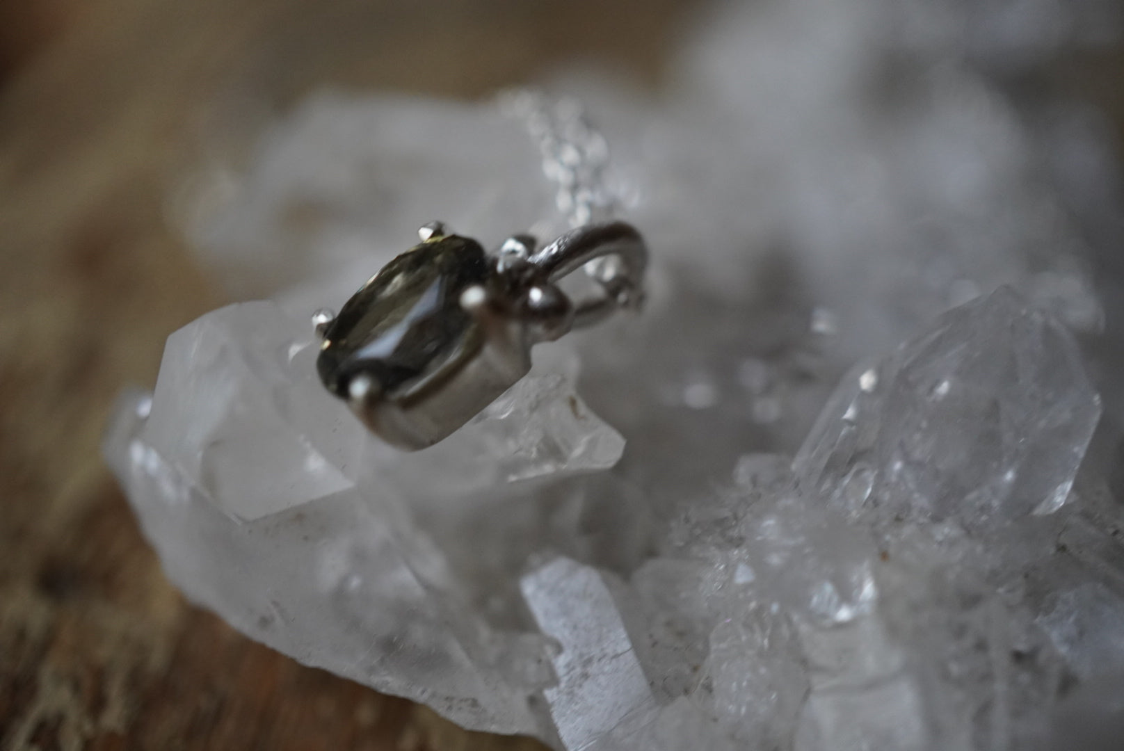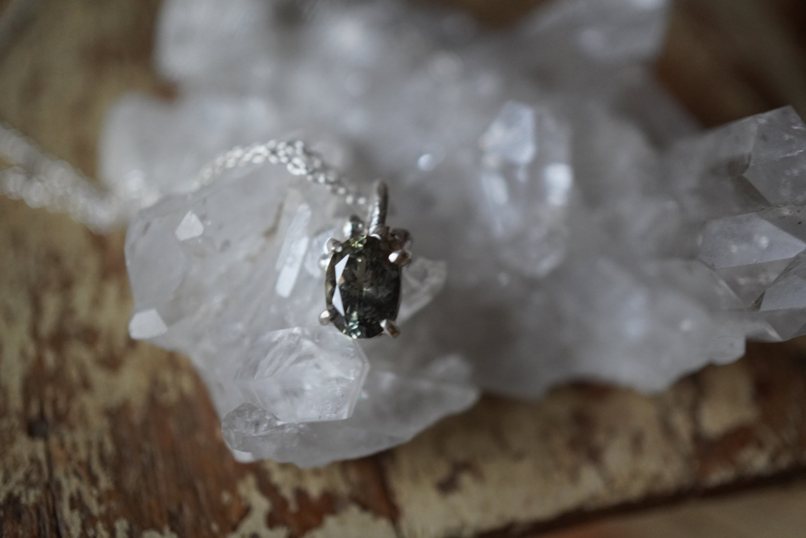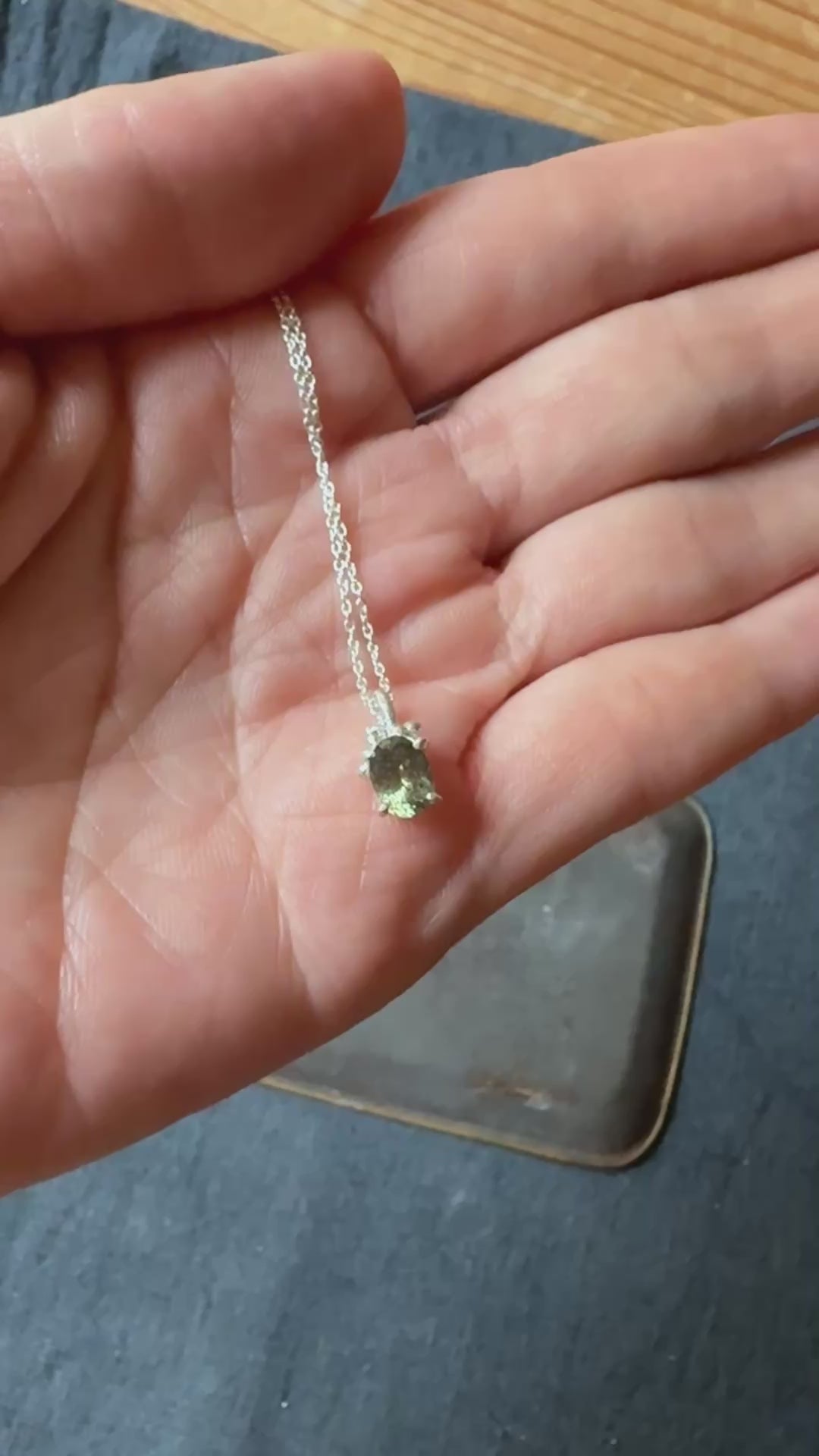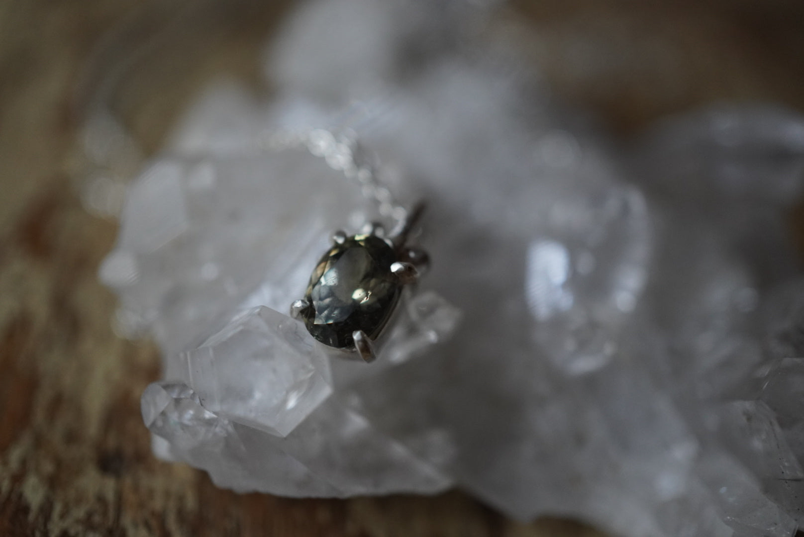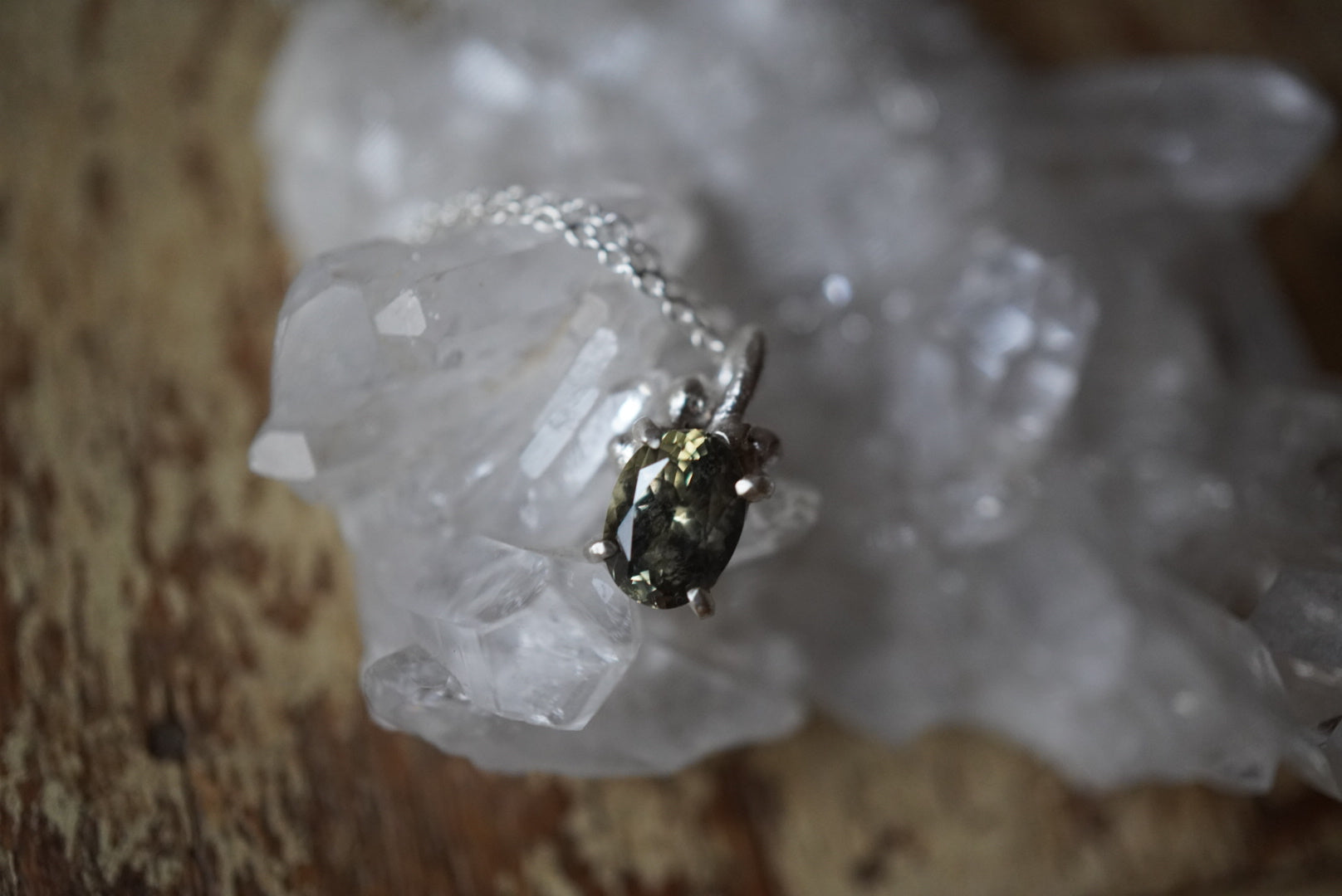 加熱されないゾイサイトの、自然のままのグリーンを留めたルース。熟成されたお茶のような色合いです。
