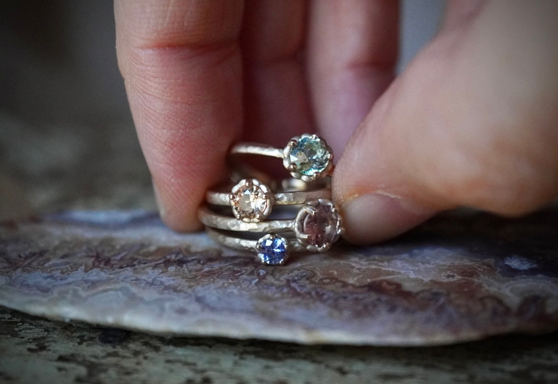 ラウンド(円形)の石で2.5~6.0mmサイズの石をinsulaのデザインで指環にお仕立てします!