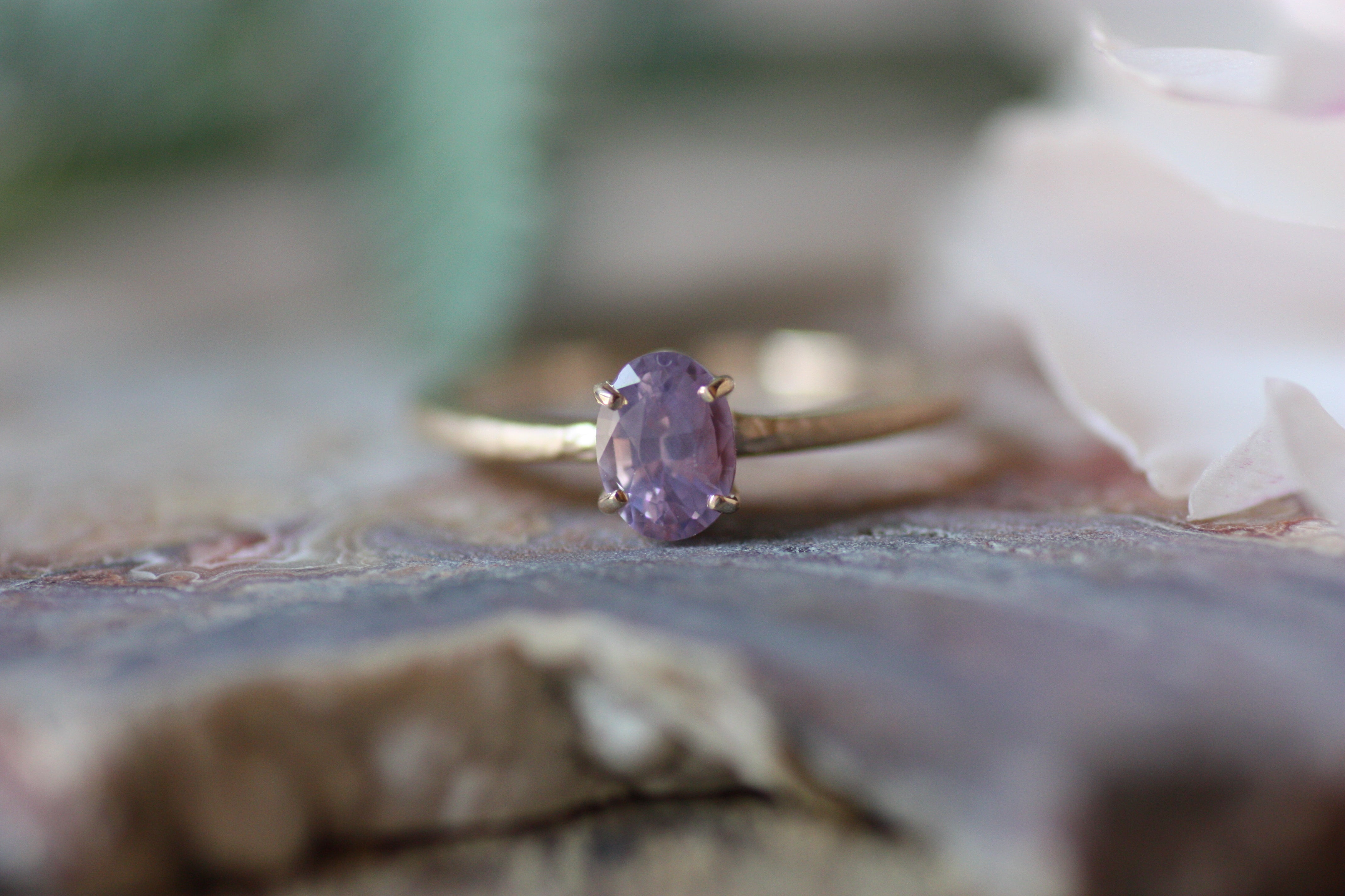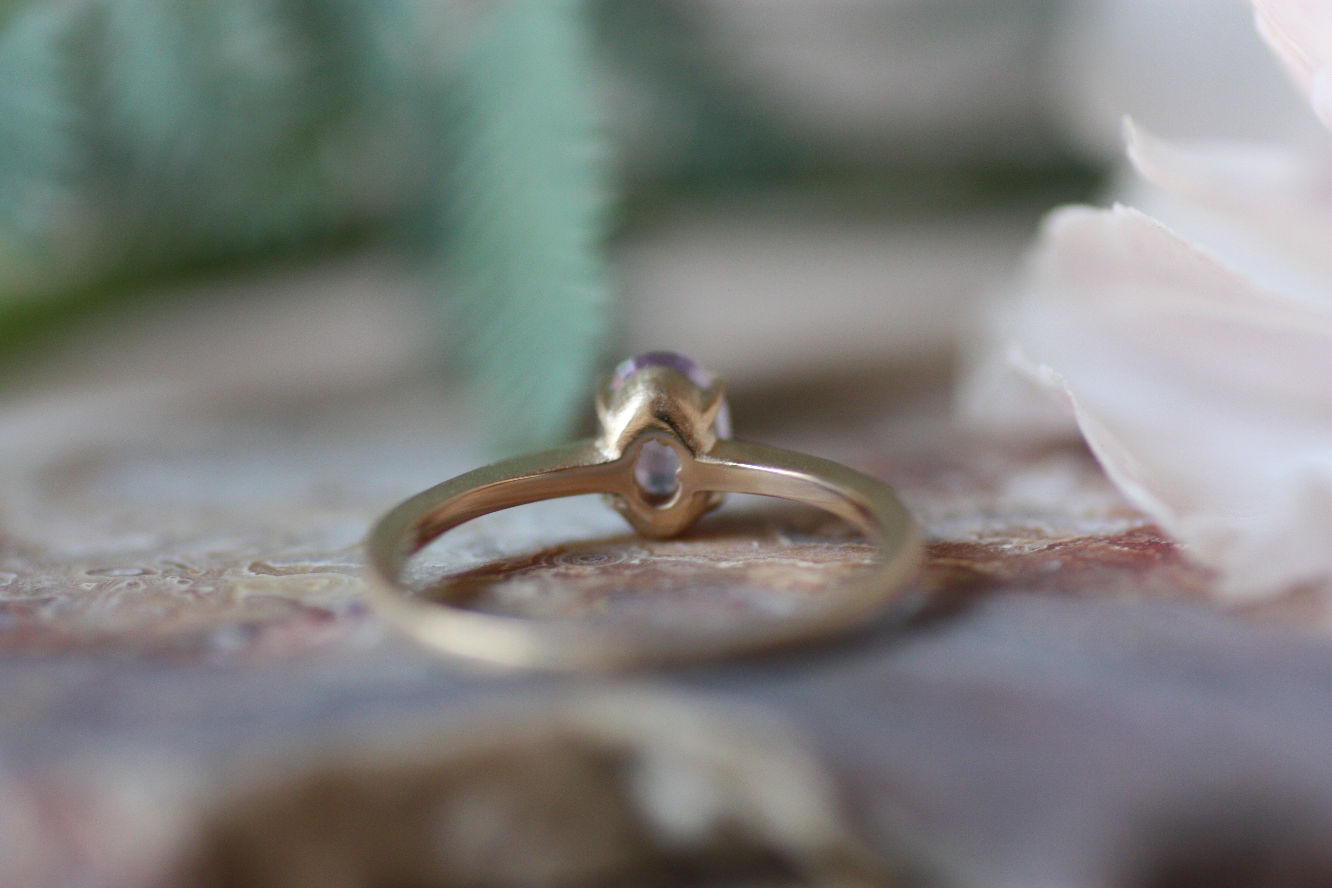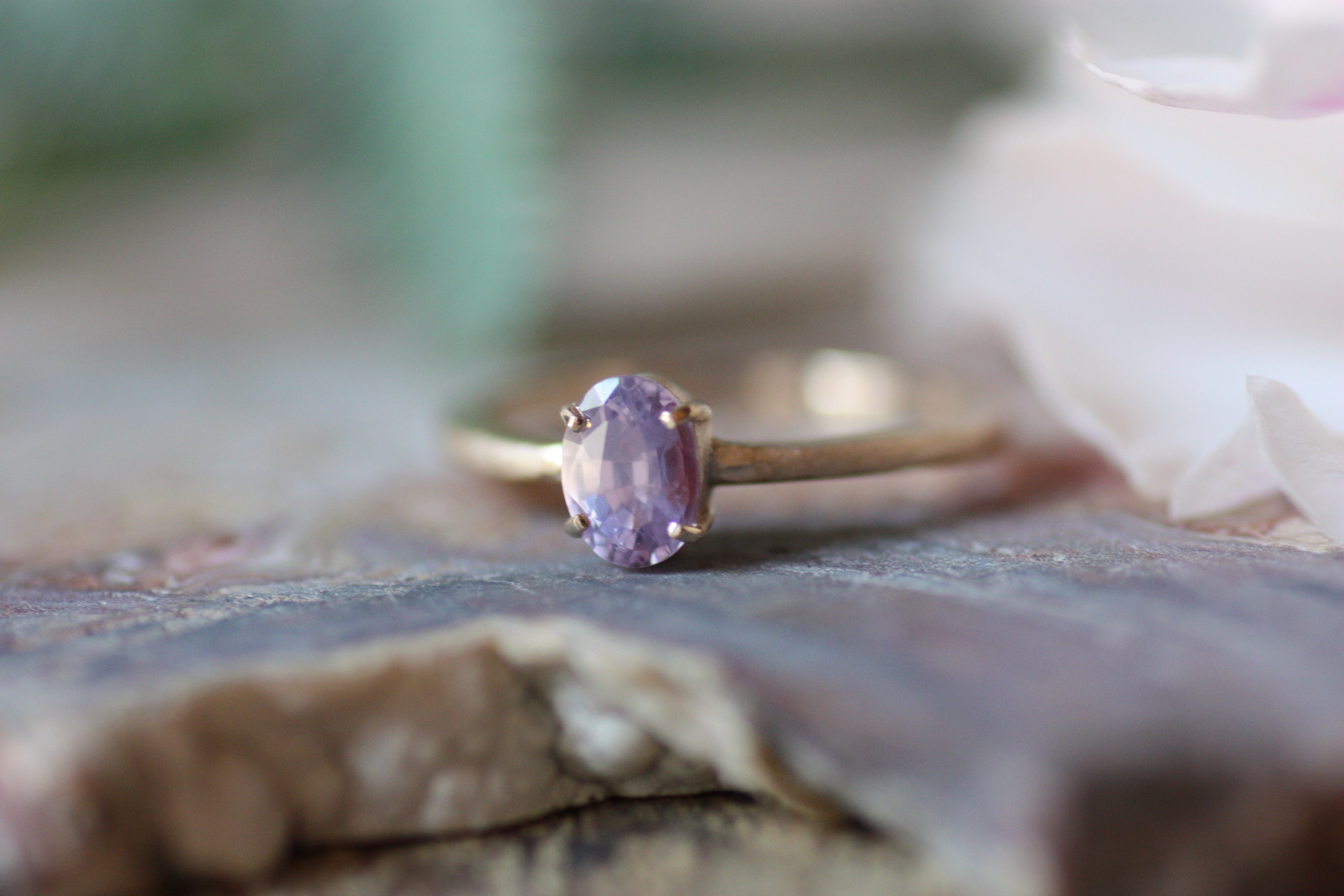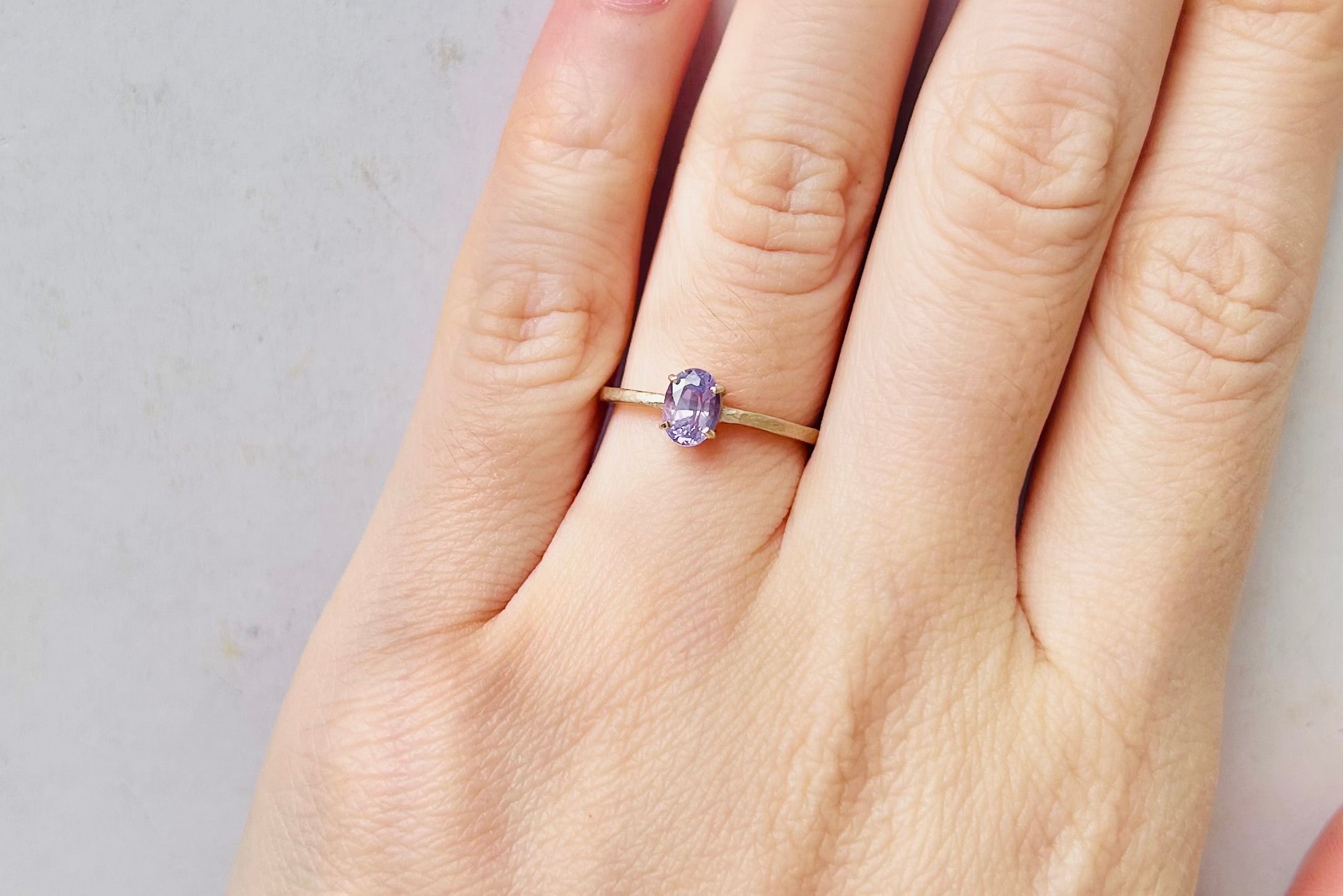 こちらは見る角度によって青紫から赤紫、ほのかな桃色までさまざまな表情を見せてくれるピース。探しても出会えない一点ものの石です。