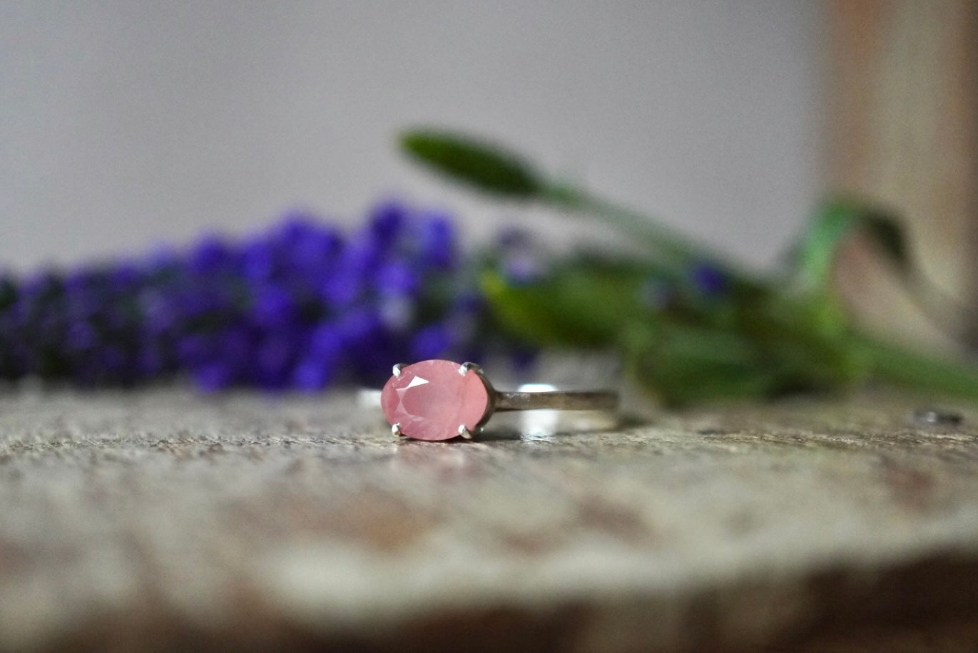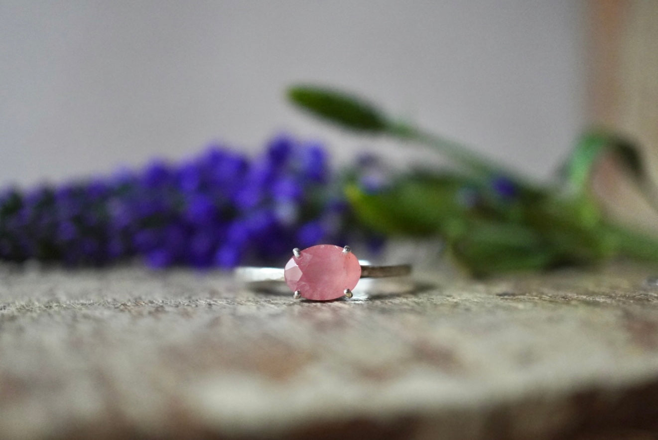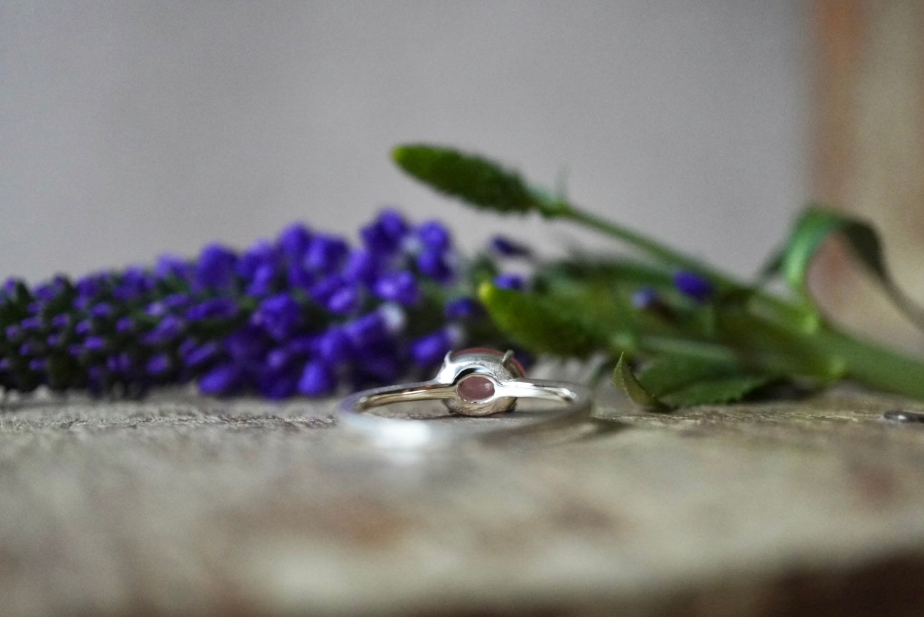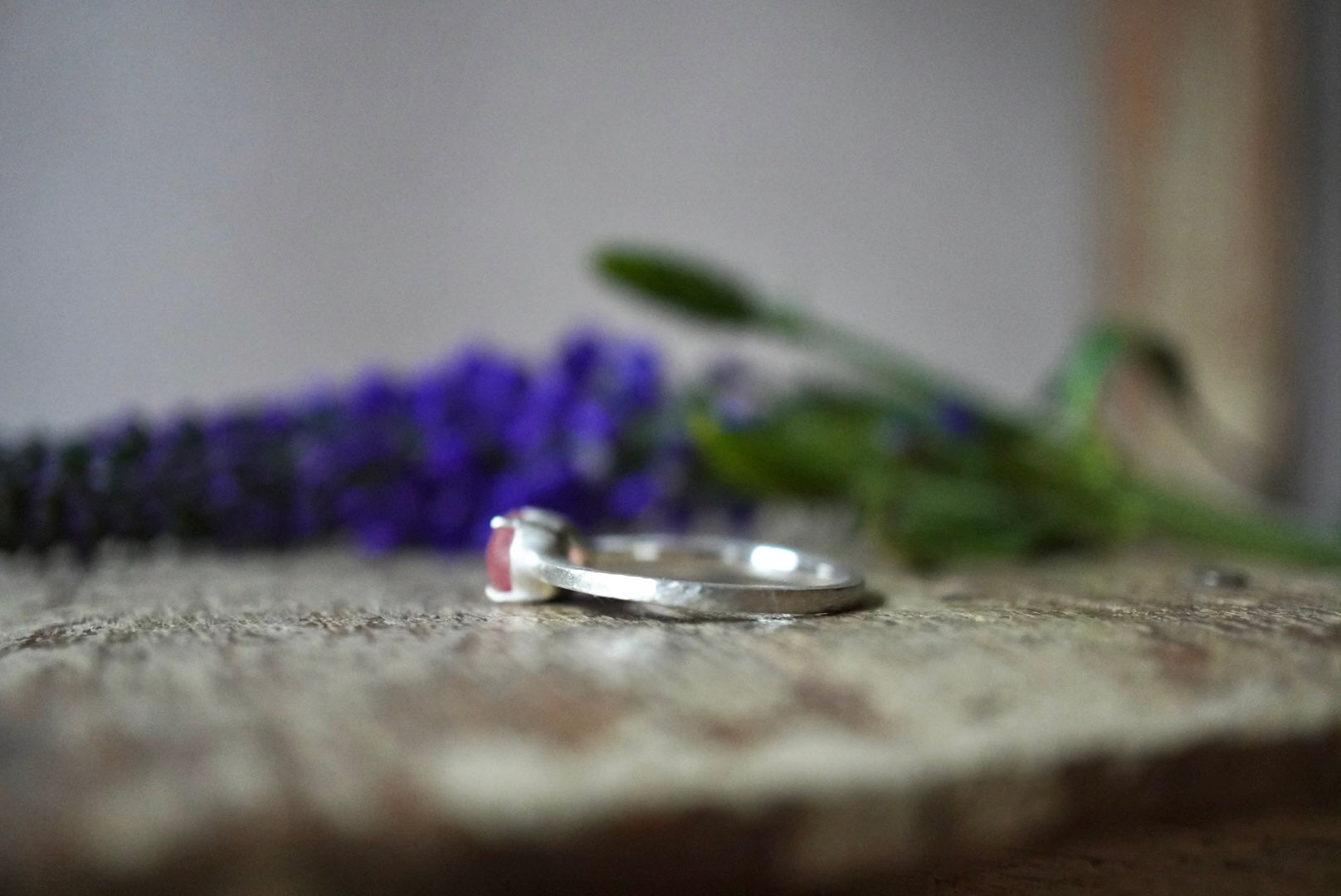 すりガラスのような独特の透明感を持つロードクロサイトは硬度が4と低く、取り扱いに注意する必要がありますが、それゆえに加工が難しく、ジュエリーとして世に出回ることが少ない石でもあります。