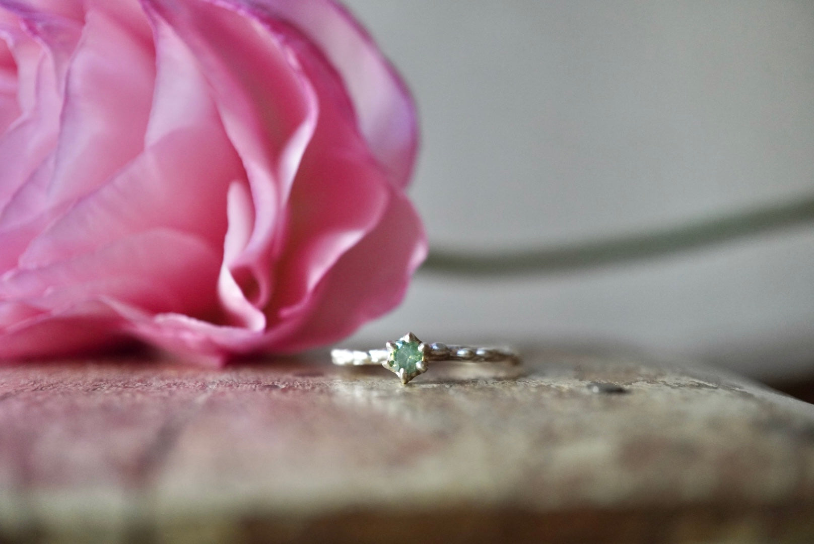 ジルコンの中でも珍しい乳白色のジルコンです。「シーフォーム」とは、海の泡を意味し、その名の通り優しく泡に包まれたような輝きを持っています。ジルコンはダイヤモンドに負けない輝きを持つ石として有名ですが、こちらはジルコンの輝きはそのままに乳白色で優しく覆い隠すような繊細な色のピース。
