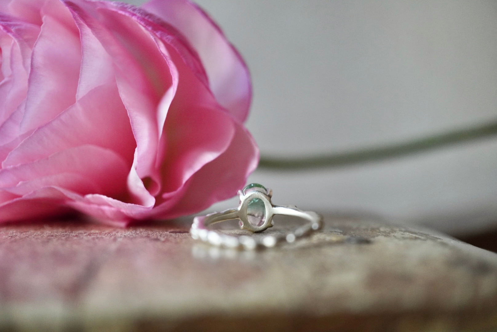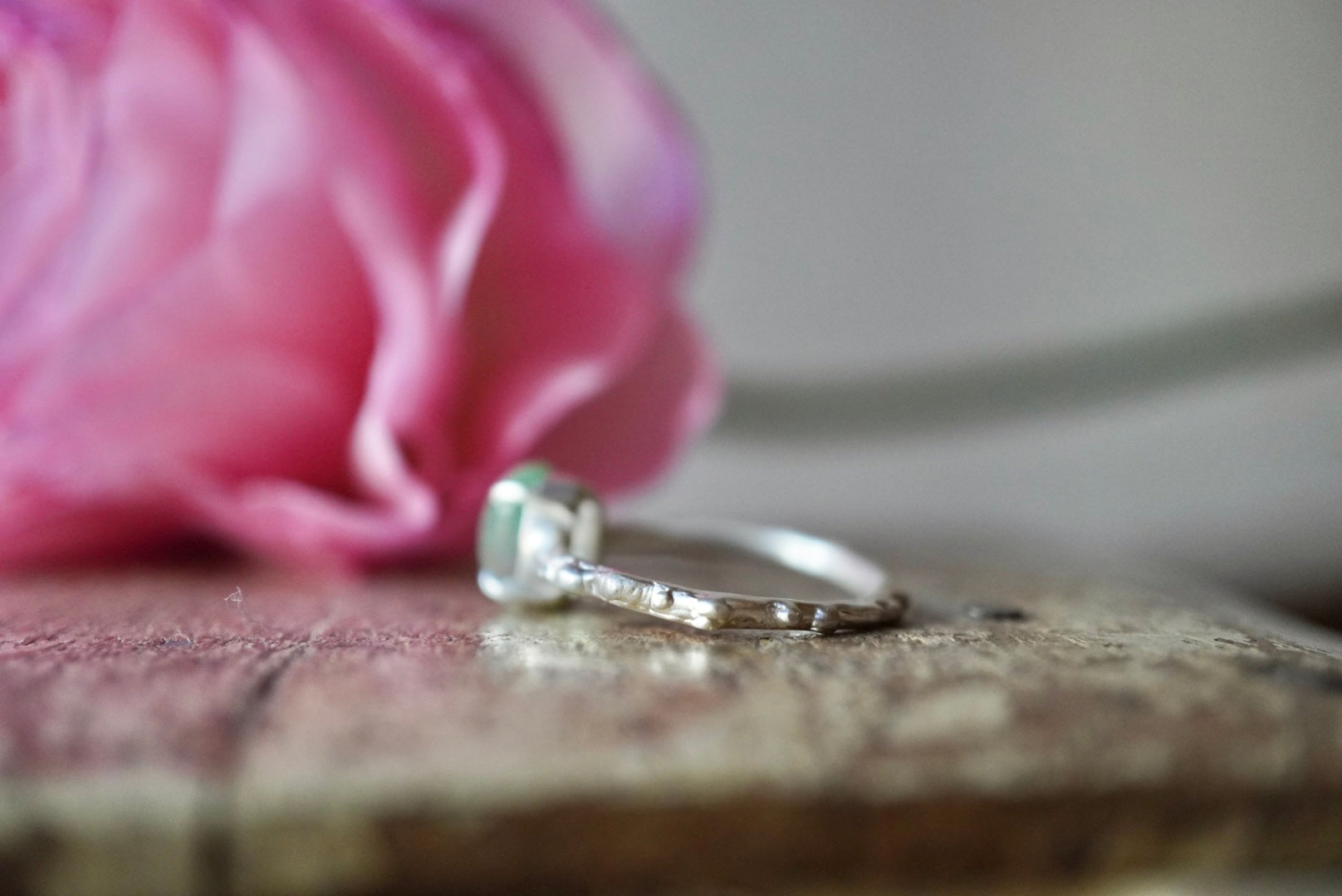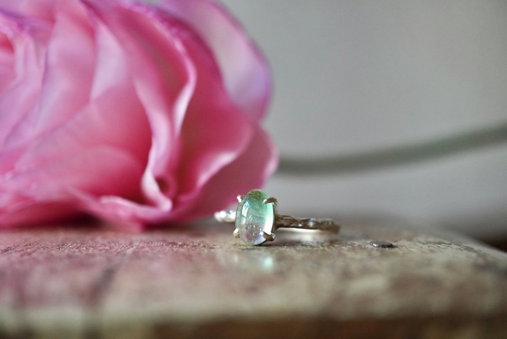 今回は桜とその葉を思わせるようなバイカラートルマリンを二点仕入れ、一つを「花見団子」と名付けました。よく見ると二色以上に色が分かれているようにも見えます。町の和菓子屋さんでは、梅が終わり桜の季節が近付くと、桜の和菓子の季節になります。花見団子もその一つ。花見団子を買って、野点でお茶を立てて、気心の知れた友人や家族と花見ができたら幸せだろうなあと思います。